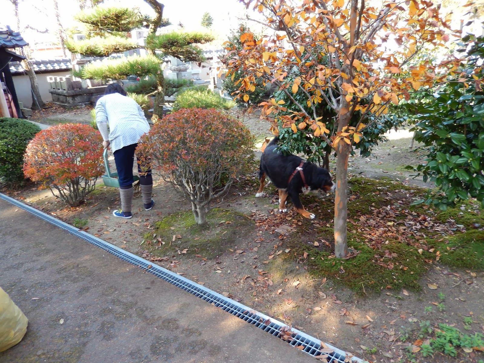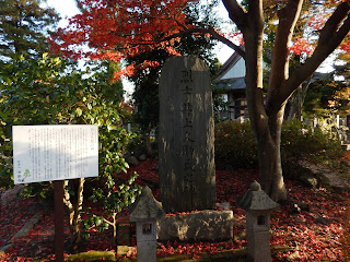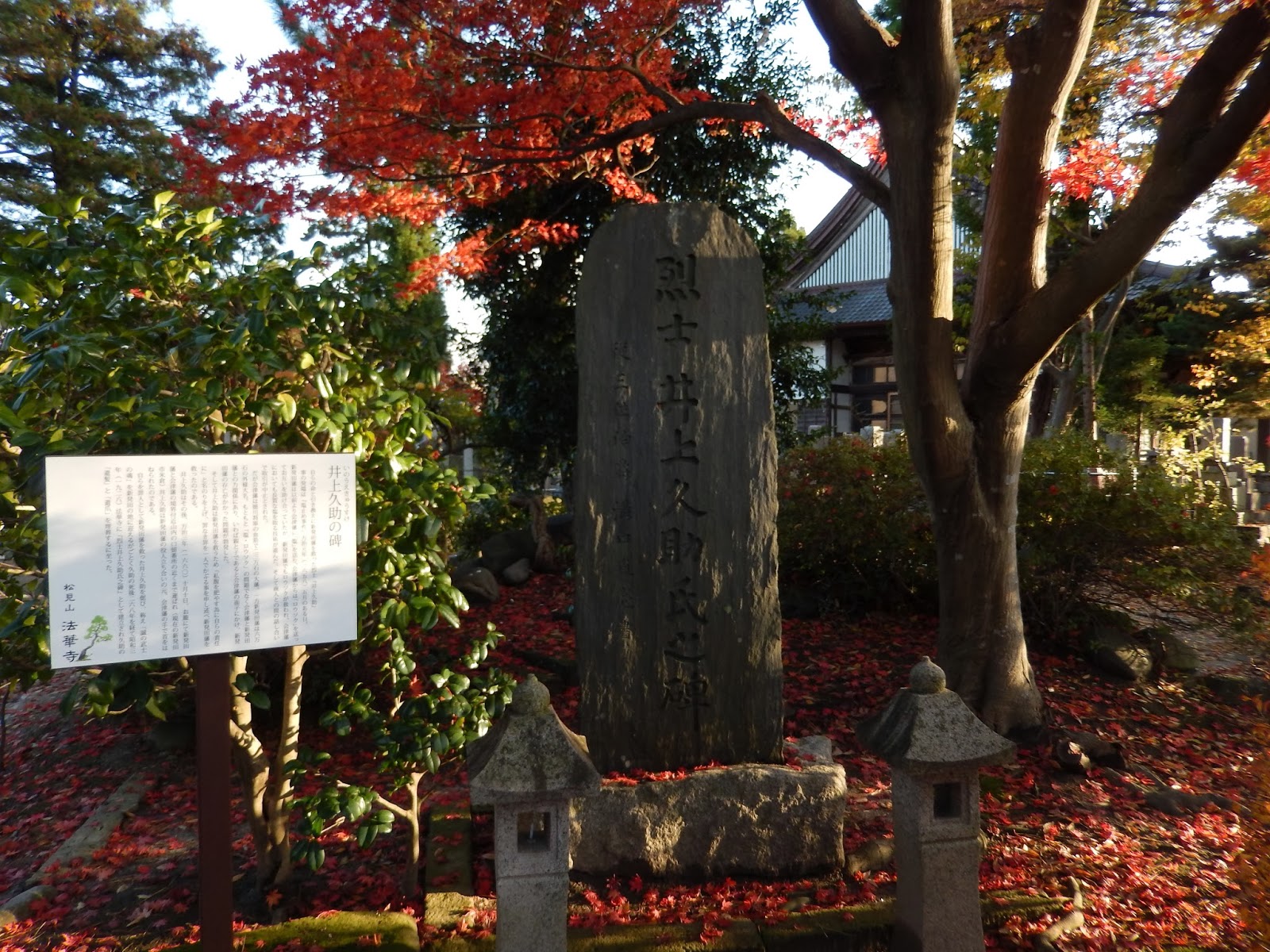 新発田市の巡見で堀部安兵衛のお母さんや丹羽伯弘さん窪田平兵衛さん井上久助さんをお参りに来られた方。境内の紅葉を写真に納める方。お墓参りに手を合わせる方々・・・。