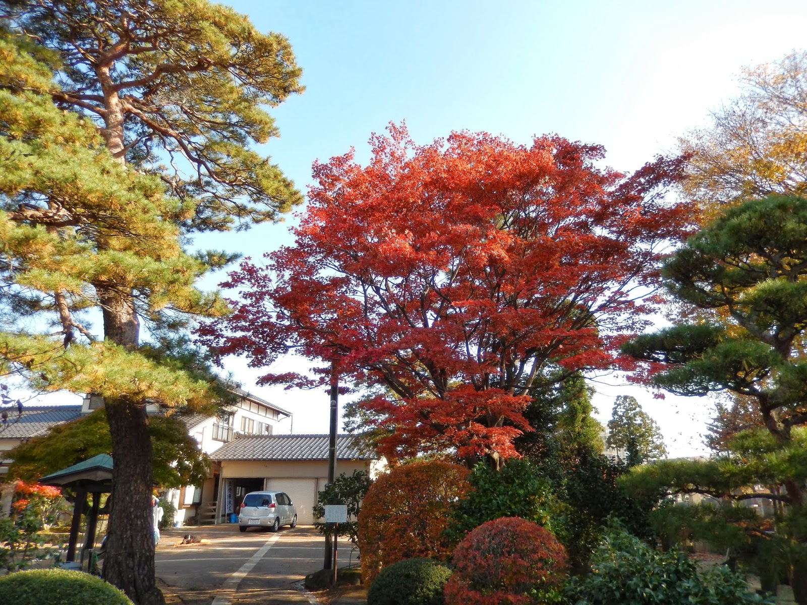 水屋の所のモミジ。内側と外側では同じ木なのに色が違うのです!!!