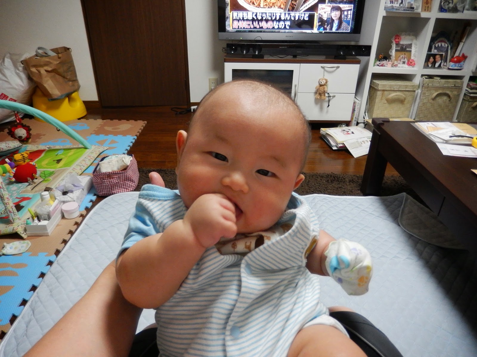お家に帰って、さっそく寝返りの練習です(^^)/~~~