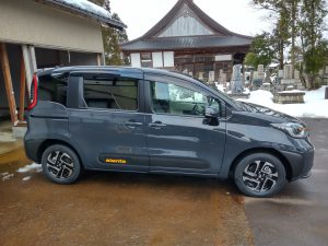 新たな相棒🚙 ついに来た🏠新たな相棒「シエンタ🚙」4駆のハイブリット✨仕事柄、会議や研修会で北陸四県を移動するので🏢🚙もっと大きな車が良いのだが💦これ以上に大きくなると普段のお経参りに使えない🏠💔(;^^)/ダークグレー🚙いい色だなぁ🎵✨純正15インチ・アルミホイール。燃費を稼ぐために細くて小さなタイヤなんだろうねぇ🎵オプションで付けた「sientaロゴ」山吹イエロー。カッコ良い~💓「日」が良い日に御祈祷してから本格始動🚙楽しみ(^^)/ カテゴリー: 未分類 投稿日: 2026年02月06日