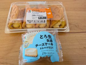 爽やかなチーズケーキ🍰甘くてふわふわなワッフル🍩妻の労いに買ったのだけど…学校から戻って来たチビちゃんに横取りされたらしい💦恐るべし女の争い(‘Д’)/💔