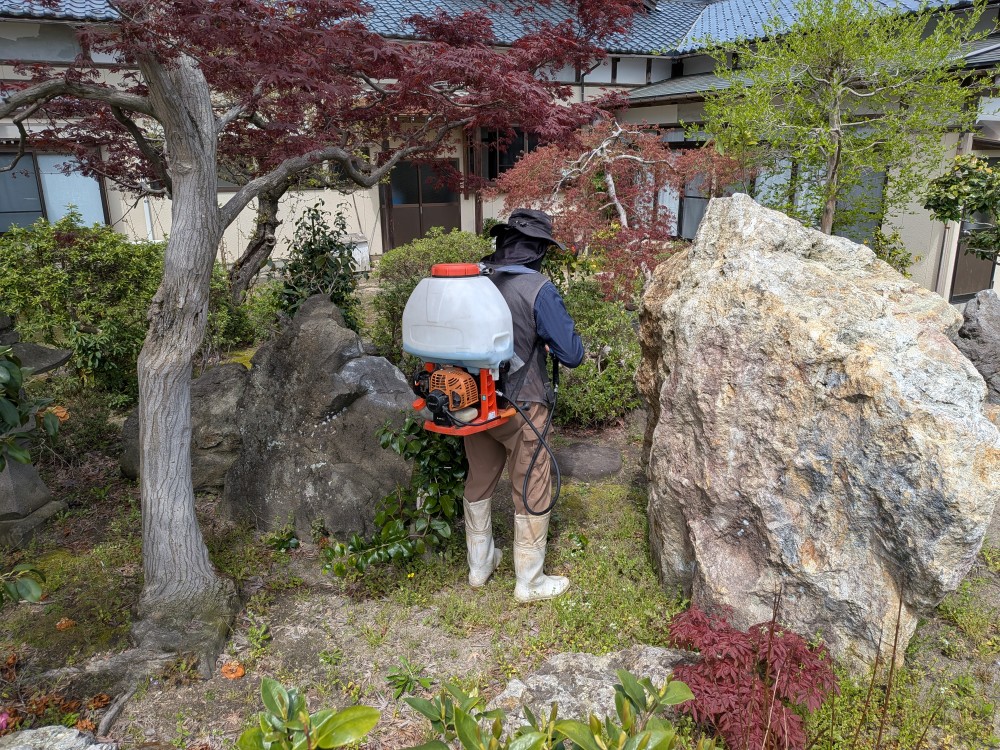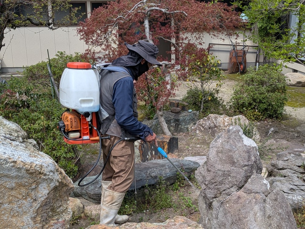 尊いお姿に合掌💓 月参りのお経から🎤戻ってくると🏠何やら境内から「エンジン音🎵」音の先に近づくと🔎法華寺の筆頭総代さん✨【おぉ~そなったね🎵ずっと気になって居ましたてば、中々忙しゅうて遅~そなりました✨】農家のお仕事が忙しいこの季節、わざわざお寺の為に除草剤を散布して下さいました🌱💊何にも言わず、ただ黙々と作業をされる総代さん。「そのお姿は尊く&格好の良い憧れの後ろ姿です💓」総代さん。いつも息子の様に可愛がって頂いて本当に有難うございます(^^)/ カテゴリー: 未分類 投稿日: 2026年04月18日